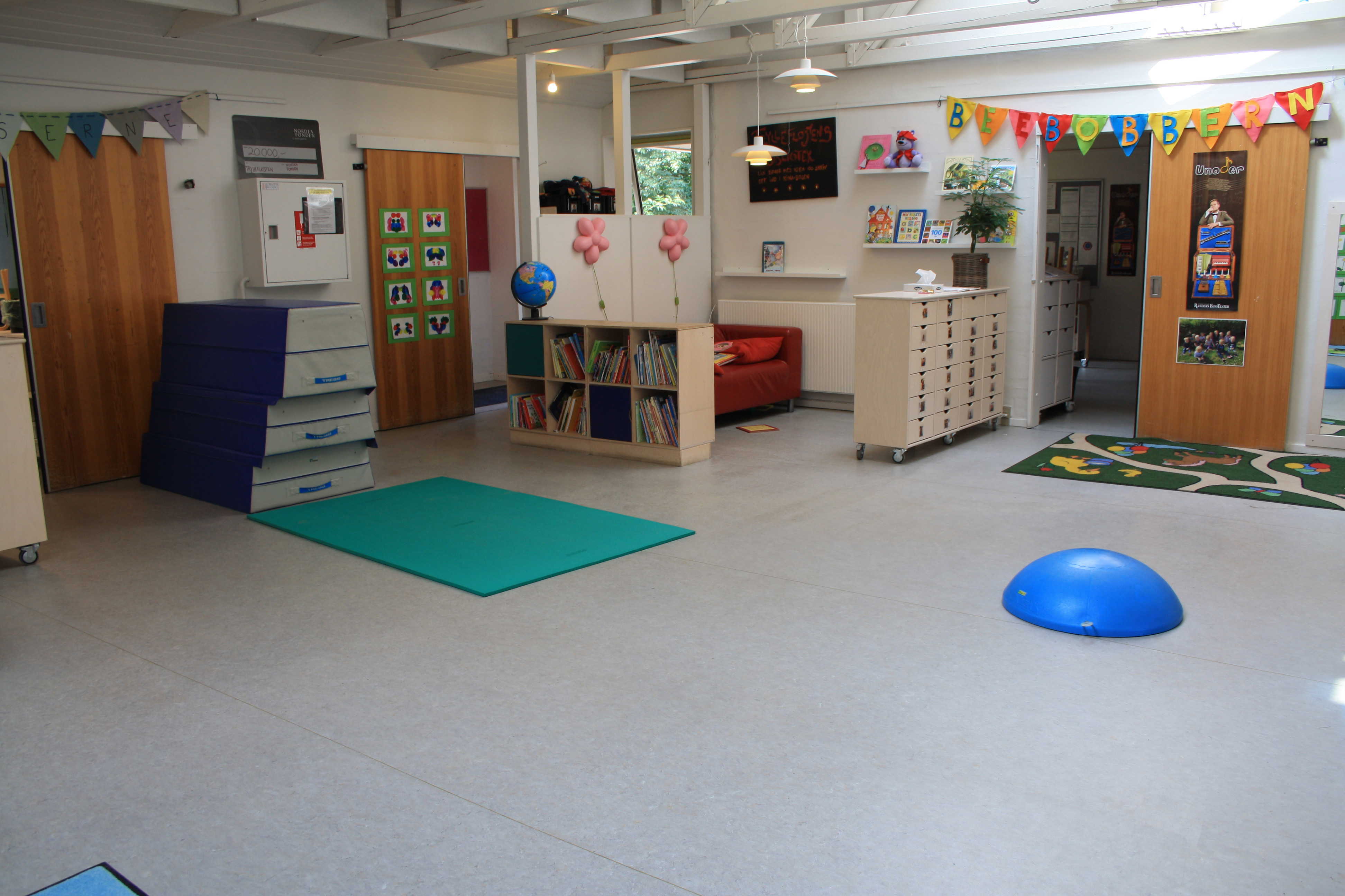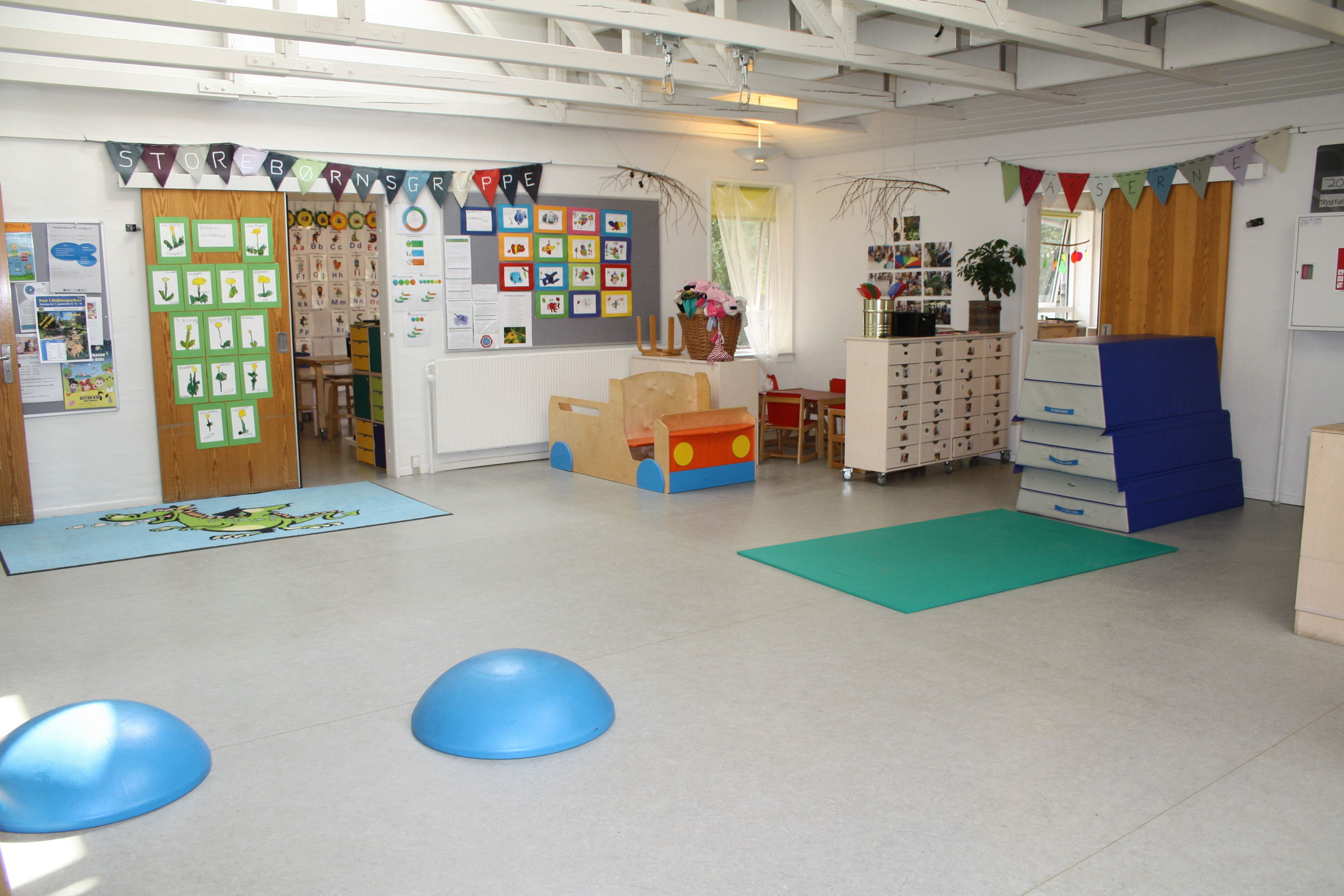 Hver gruppe har sit eget rum. Børnehavens centrale rum er alrummet, hvorfra der er forbindelse til grupperummene.