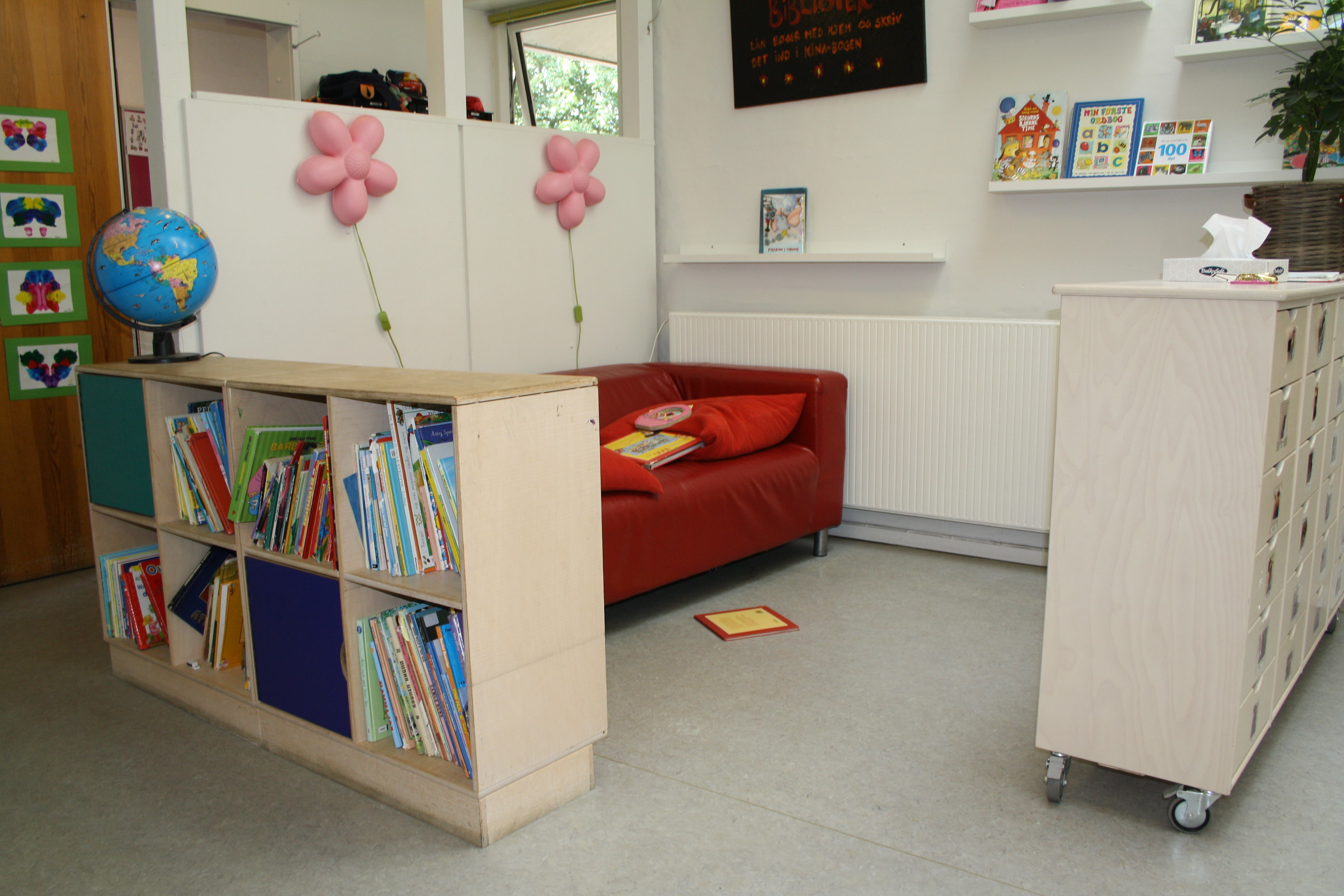 Hver gruppe har sit eget rum. Børnehavens centrale rum er alrummet, hvorfra der er forbindelse til grupperummene.